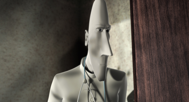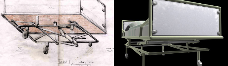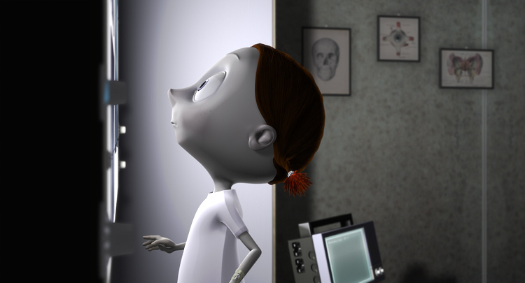 X-rays inspired the whole design for ‘LUCIA’. I had a lot of discussions about the hospital's interior with Sonja Winzenried, who developed the concept for the rooms and some of the props. This helped me find the right atmosphere and technical approach on how to work with lights and textures. As ‘LUCIA’ was my graduation film and I knew I would have to do most of the work on my own, I always tried to reduce the complexity of the design and storytelling.